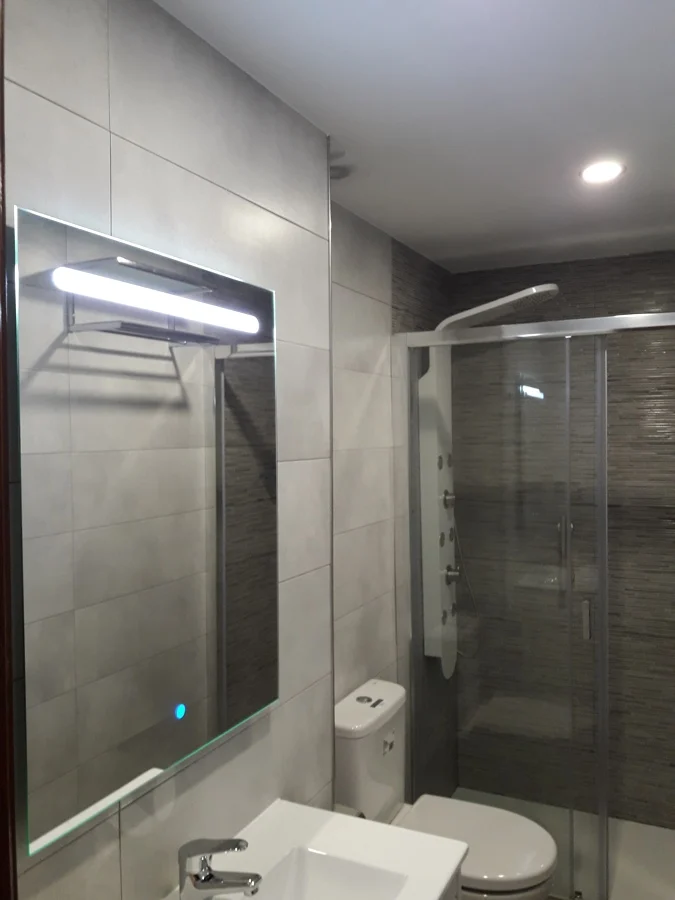 Este proyecto de reforma integral de baño destaca por convertir un espacio estrecho en un ambiente lleno de luz, color, y comodidad, sin comprometer la calidad y satisfacción de nuestros clientes. La modernización incluyó la instalación de aire acondicionado, muebles de lavabo de la marca Roca, y un innovador espejo con luz LED integrada, reflejando las últimas tendencias en diseño.